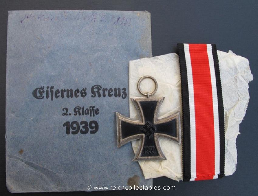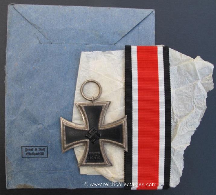 Iron Cross Second Class 1939 Set, Rare variant of the Übergroße “Little Brother” (as described by collectors) this is the smaller Übergroße complete with equally rare packet of issue which is maker marked Frank & Reif, Stuttgart, c/w some of the original tissue and full length unused ribbon, un marked on the ring as usual, Excellent Condition